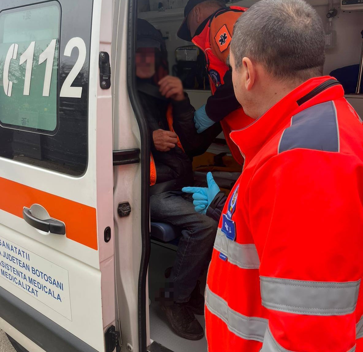 Bărbat din Botoșani preluat de ambulanță după ce a cerut ajutor unui jandarm