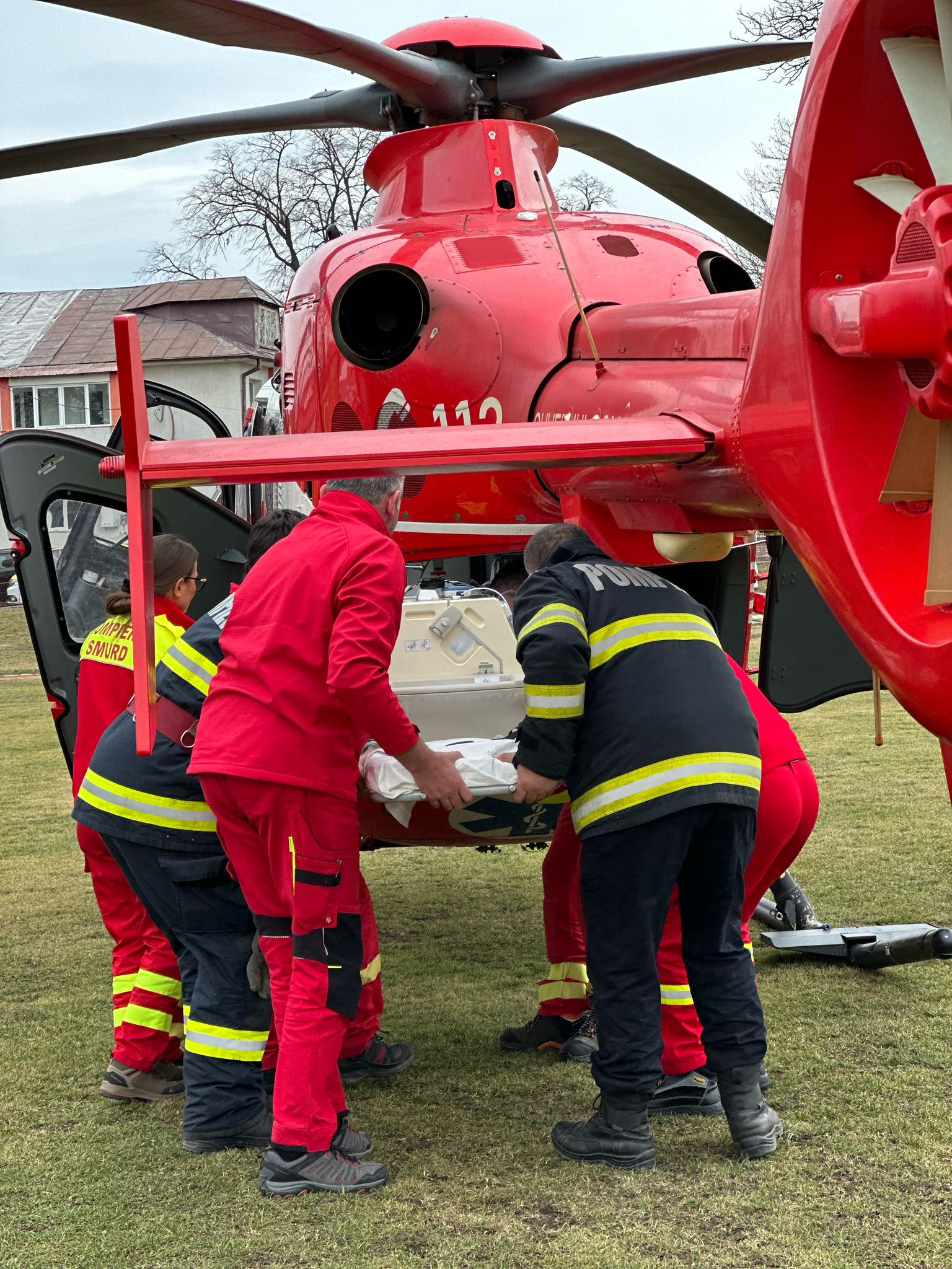 Femeia de 49 de ani, aflată în stare gravă, a fost preluată de pe heliportul din Botoșani cu un elicopter SMURD pentru a fi transportată la un spital din Iași. Operațiunea de transfer a necesitat implicarea pompierilor care au asigurat condițiile de siguranță la aterizarea și decolarea aeronavei.